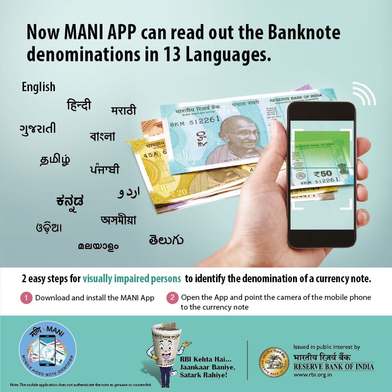 RBI launches the MANI App (Mobile Aided Note Identifier)